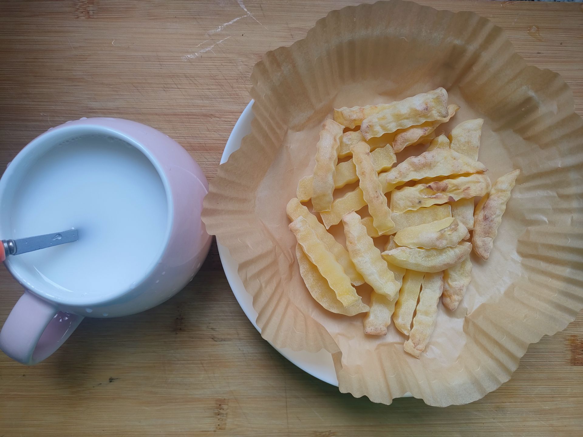 早餐烤了一个土豆加一杯兑水的娃哈哈AD钙